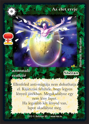 Az élet ereje is sok vitát váltott ki a tesztelés során, a nullás (majdnem) lapcounterekből ugyan elegem van már, azonban ennek a feltétele, hogy legyen lényed, máris értelmesre csökkenti a használhatóságát. Arochosban igen jó (a színe is), Molluszkban is, bár ott picit korlátoztuk. Mérgező pakliban is kellemes volt, de igazából bármibe mehet, ahol szinte biztosan lesz az első körben lényünk az asztalon. Persze nem éri el az Erős ereje - Térszaggatás - Solisar aurája szintet, de ez egyáltalán nem baj.